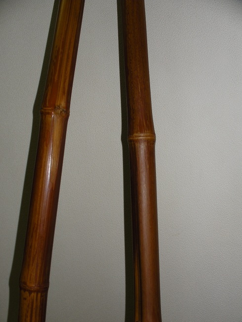 幾年月もかけて足技宗家(正派足技宗家家元)と共に歩んできた竹棒は、不思議な色をまといます。何百、何千、何万回と握りしめられるうちに薄黄色のはずであった竹棒は、褐色の「熟練色」を帯びていくのです。