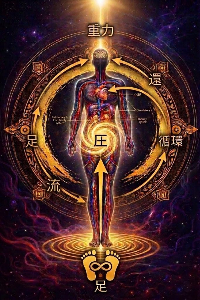 足の裏という広い面を使い、そこから「螺旋の波動」を深部へと響かせる